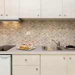 - ❓Is there a kitchen available at Aglaia Studios apartment for guest use?Yes, Aglaia Studios apartment is equipped with a fully furnished kitchen and offers a fridge, an oven and a cooktop as well.